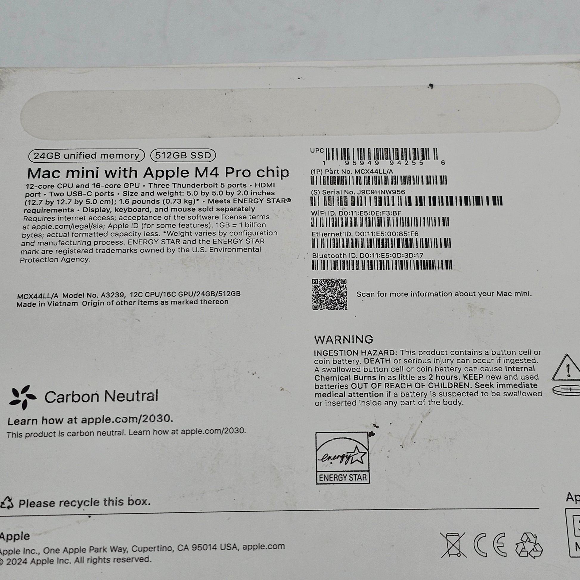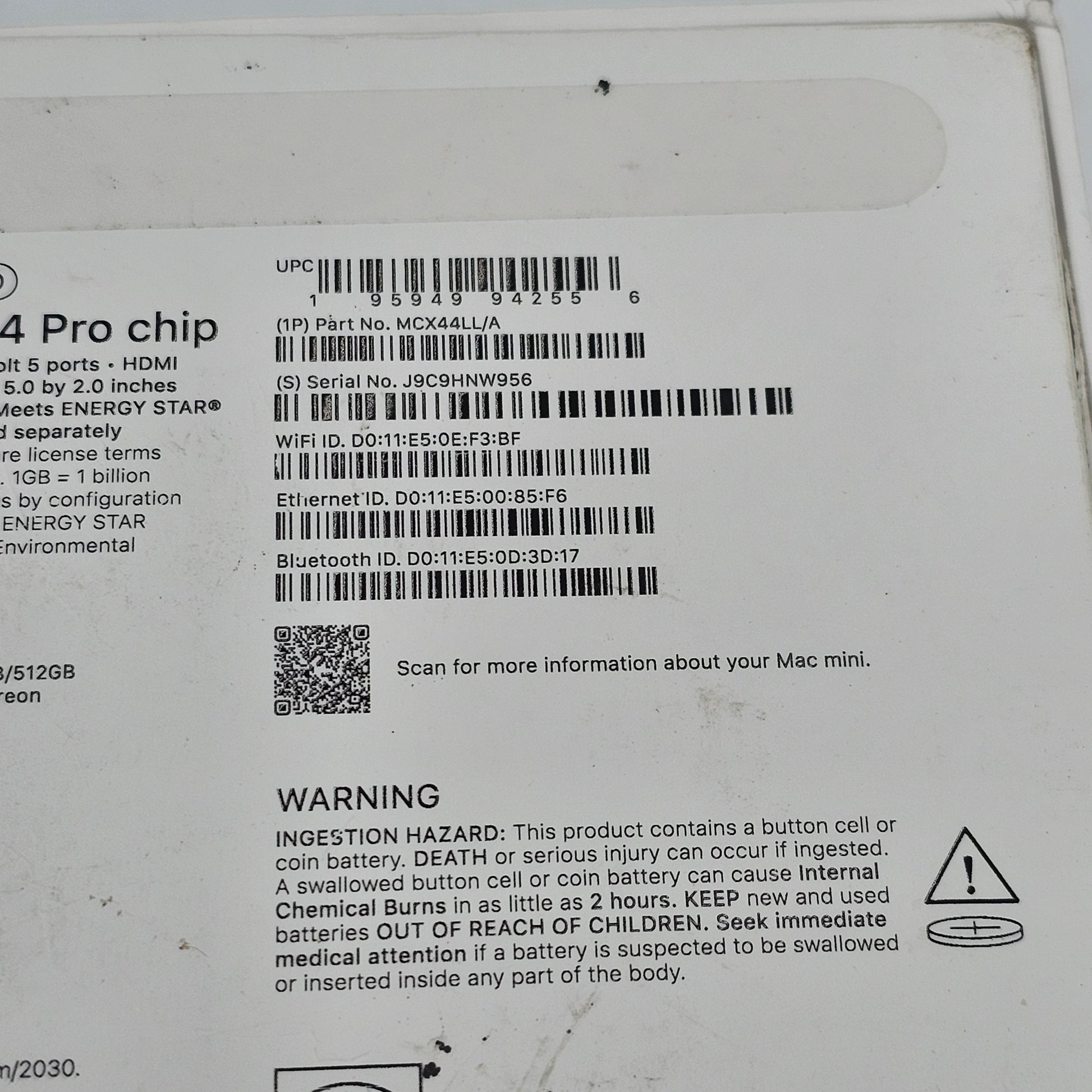 Serial# | J9C9HNW956 |