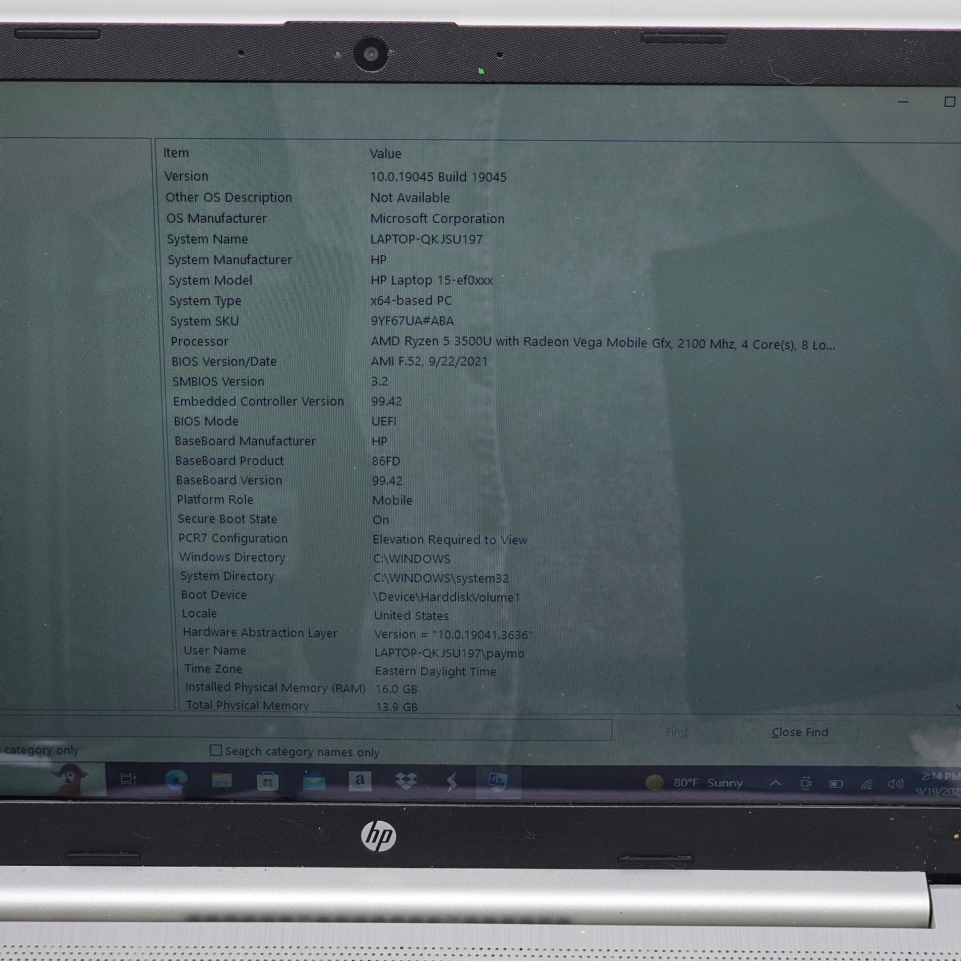 HP Laptop 15-EF0023DX 15.6" Ryzen 5 3500U 2.1GHz 16GB RAM 1TB HDD