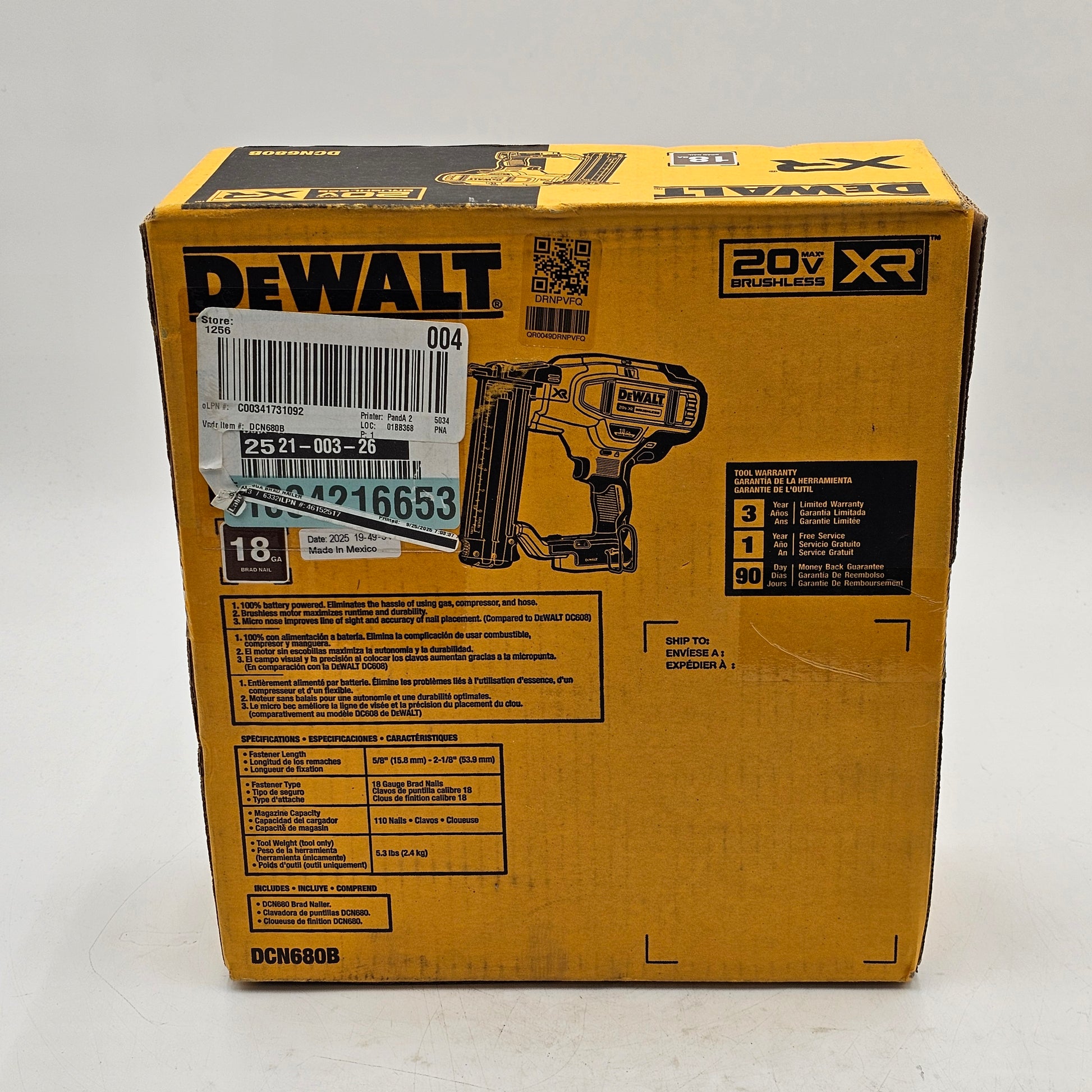 New DeWalt DCN680B 20V MAX Brad Nailer