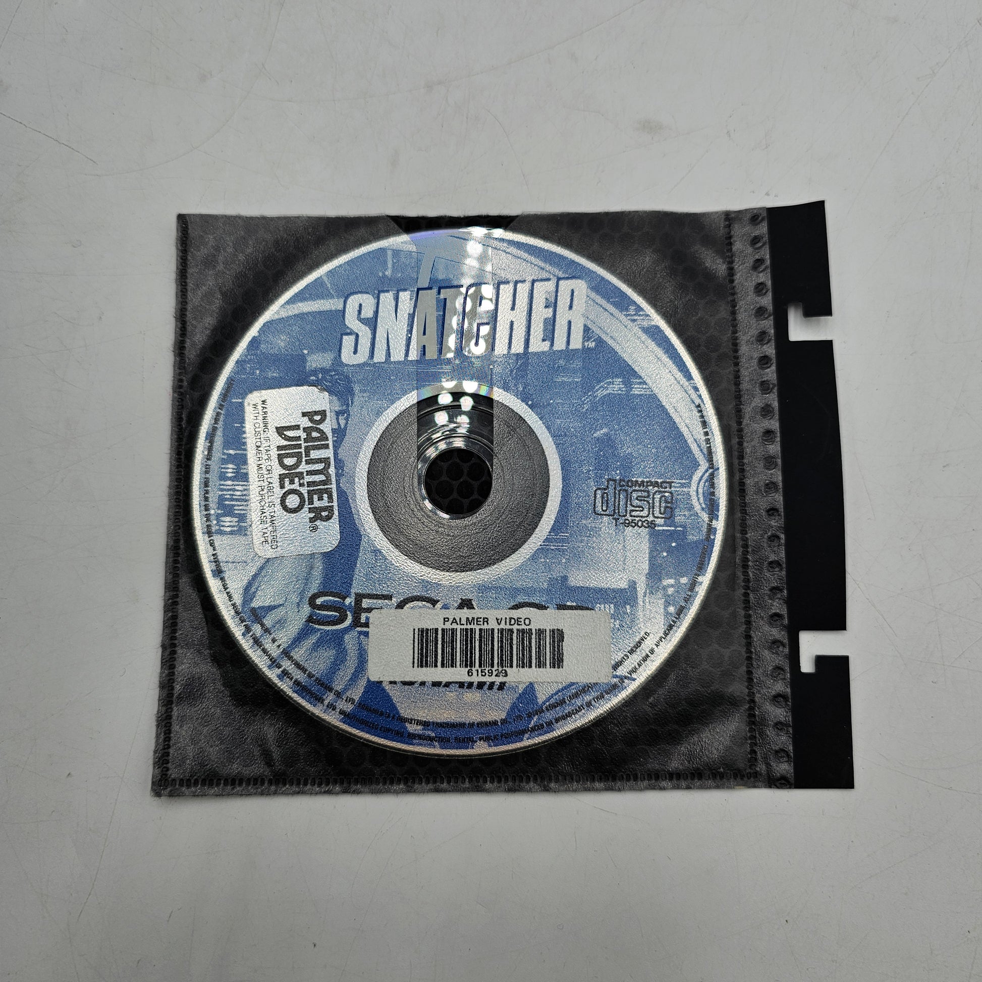 This Snatcher Sega CD video game is used and functional. The disc loads and plays on a compatible Sega CD console, offering a cyberpunk adventure with point-and-click gameplay. Due to wear, there may be occasional playback interruptions; cleaning or repair may be needed. Sold as the disc only, no original case or packaging included.