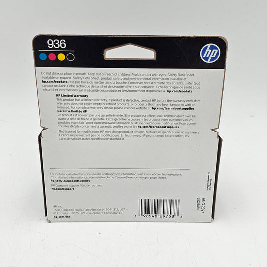 New HP 936 65026589 Black, Yellow, Cyan and Magenta Ink Cartridge 4 Pack
